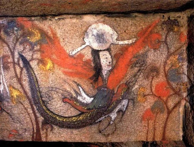 更引人入勝的是,神農氏、伏羲、女媧也出現在壁畫中。流暢的線條,誇張的形象,極富衝擊性的色彩烘托出神秘的氣氛,讓人讚歎高句麗畫師的純熟技藝和筆法生動。