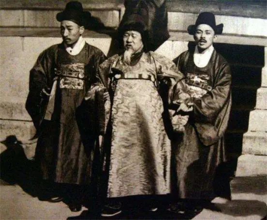 在李氏朝鮮的官服中,前期與明朝官服完全相同,後期官帽翅帽和官服的制式雖略有改動,但從圖中仍可看出李朝官服以烏紗帽、寬大的直身袍和腰束革帶為主,保留着明朝式樣。