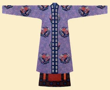 明代皇帝常常頭戴烏紗折上巾,身着盤領窄袖衫,腰帶束帶。且在袍衫的前後及兩肩繡一條盤旋的金龍,以顯皇威。