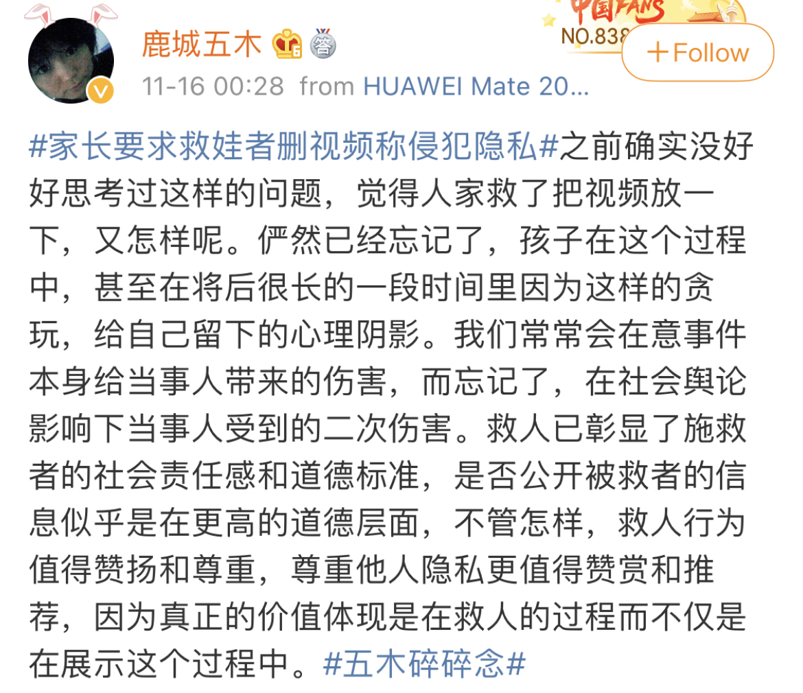 救人行為當然值得讚賞,但公開含有對方肖像和個人信息的視頻是不是凌先生的自由呢?