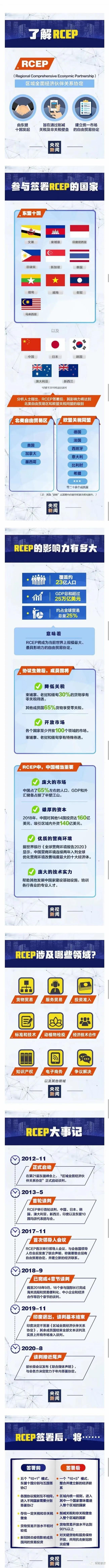 2019年11月,RCEP領導人發表聯合聲明,宣佈15個成員國結束全部文本談判及實質上所有市場準入談判,將啓動法律文本審核工作,以便在2020年簽署協定。