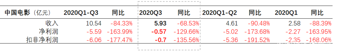 由於上半年的影院停擺,影院業務佔比較高的萬達電影和中國電影產生了大幅度的虧損,萬達前三季度虧損高達20.15億,中影前三季度虧損為5.59億。但在疫情造成的影院洗牌中,萬達已經通過特許經營和定增進行擴張。