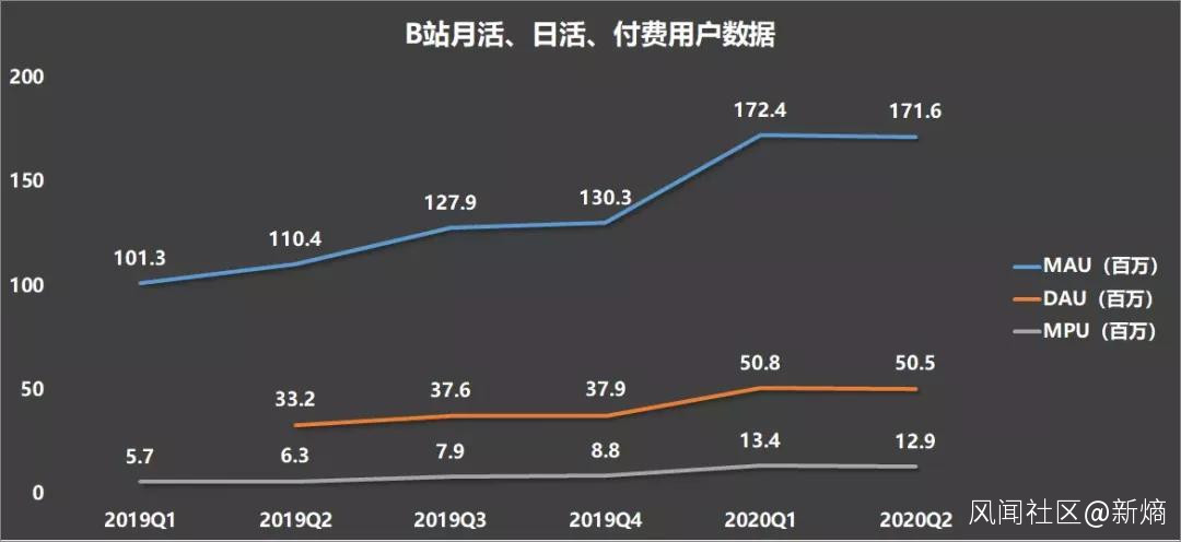 一季度月度活躍用户 1.724億,同比增長70%,二季度的月度活躍用户為1.716億,同比增長55%,用户增長的代價是高營銷成本的支出,B站一季度銷售和營銷支出為6.060億元,同比增長234%。