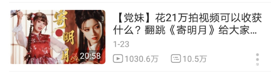 對於頭部up主來説,激勵計劃和充電計劃所獲得的收益或許還趕不上內容製作成本的一半。B站百大up主「機智的黨妹」曾公開其一期的視頻製作成本,場景搭建、服裝、設備、設計以及住宿妝造共花費21萬,視頻點擊量1030.6萬,即使按照網傳的1000播放量能獲得3元收益,激勵收入也僅是3萬元。