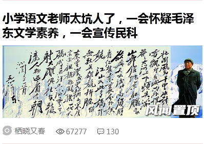 《小學語文老師太坑人了,一會懷疑毛澤東文學素養,一會宣傳民科》--- 棲曉又春