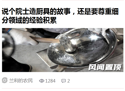 不過,很多事還是不能想當然,要尊重細分領域的積累。一位觀友就和大家説了一個院士造鍋和造刀的故事與大家分享。