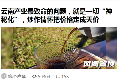 《雲南產業最致命的問題,就是一切“神秘化”,炒作情懷把價格定成天價》--- 燒個鷹醬