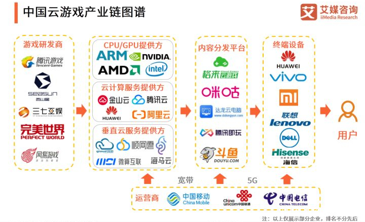 雲遊戲是目前5G商用最好的應用之一,這一點是行業共識。上游CP如騰訊、網易、西山居、完美世界等均已佈局雲遊戲業務。依託GPU廠商英偉達和超微半導體,網絡供應商移動聯通的5G服務,和雲計算廠商阿里雲、金山雲和華為等硬件廠商一同發力。可以説雲遊戲目前軟硬件齊備,只欠東風。