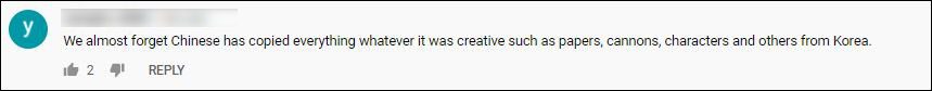 “我們幾乎快要忘記了中國剽竊了諸如紙張、大炮、歷史名人和其他來自韓國的東西。”