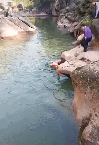 簡單來説,就是會水的遊客準備跳下去時,史雲森先跳了下去,之後大家一起完成救援。