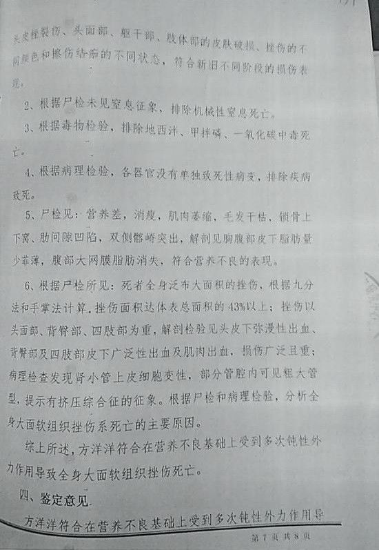 據方某洋的表哥謝樹雷介紹,妹妹方某洋出嫁時160多斤,被毆打致死時只有60多斤。