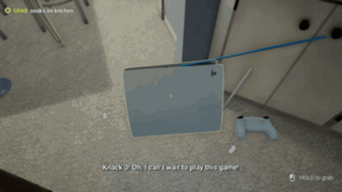 同時,你想到自己買的遊戲遺落在某個房間裏,你再去找遊戲。翻箱倒櫃後,你找到了《Knack 3》(鈉克的大冒險,目前只有2)。