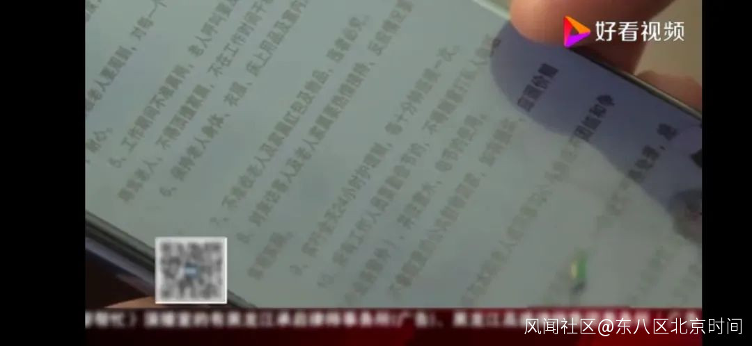 張女士認為發生這樣的事情也和養老公寓的管理混亂有關。根據張女士拍攝的養老公寓護理員崗位職責,其中第九條規定,實行全天24小時護理,每十分鐘巡視一次。“如果養老公寓做到了24小時監護,每十分鐘巡視一次,我媽這件事也不會發生。”