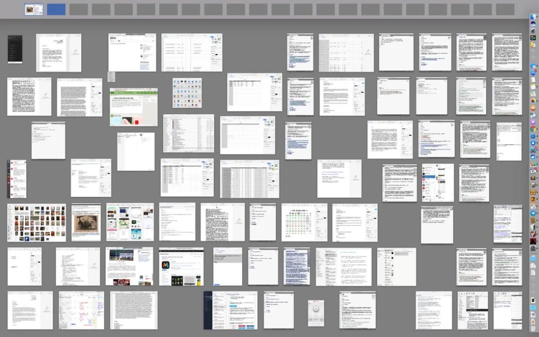 macOS 上的 Mission Control 模仿了書攤一地的工作狀態。但你家任何一個房間的地板面積都大於哪怕三十寸的電腦屏幕吧。