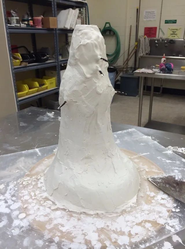 在蠟稿完成以後,我們就可以在上面覆一層耐火石膏模具。之後要用高温的蒸汽,把裏面的蠟全部都蒸出來,所以有的地方也把這種方式叫做「失蠟鑄造法」,或者「脱蠟鑄造法」。