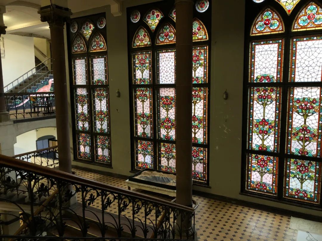 在美院裏面,每半層就會有這麼一面牆,上面全是彩色的玻璃窗。當時外面的光照也不太充足,天空灰濛濛的,所以透過這些彩色玻璃窗照進室內的光線就顯得格外温暖。