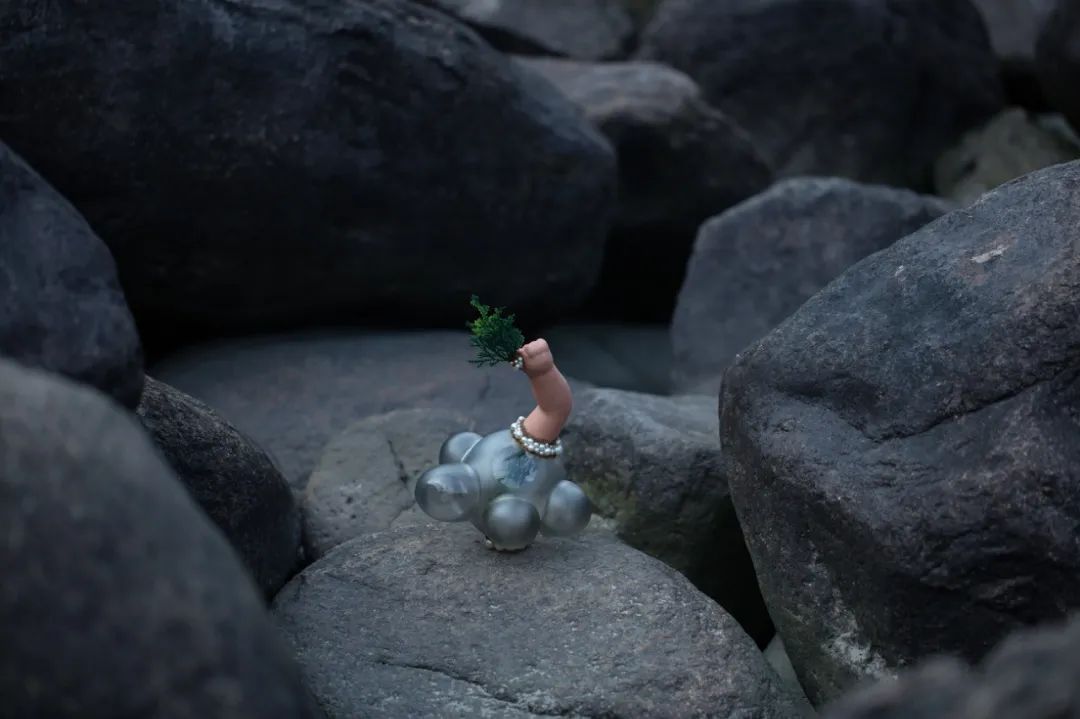 我覺得那個場面非常魔幻。我特別喜歡那隻小手握住的那一株假草。那個場景加上那件作品,也是我自己那段時間的心情寫照。在那種環境下,總得抓住點兒什麼,哪怕只是一株假草。