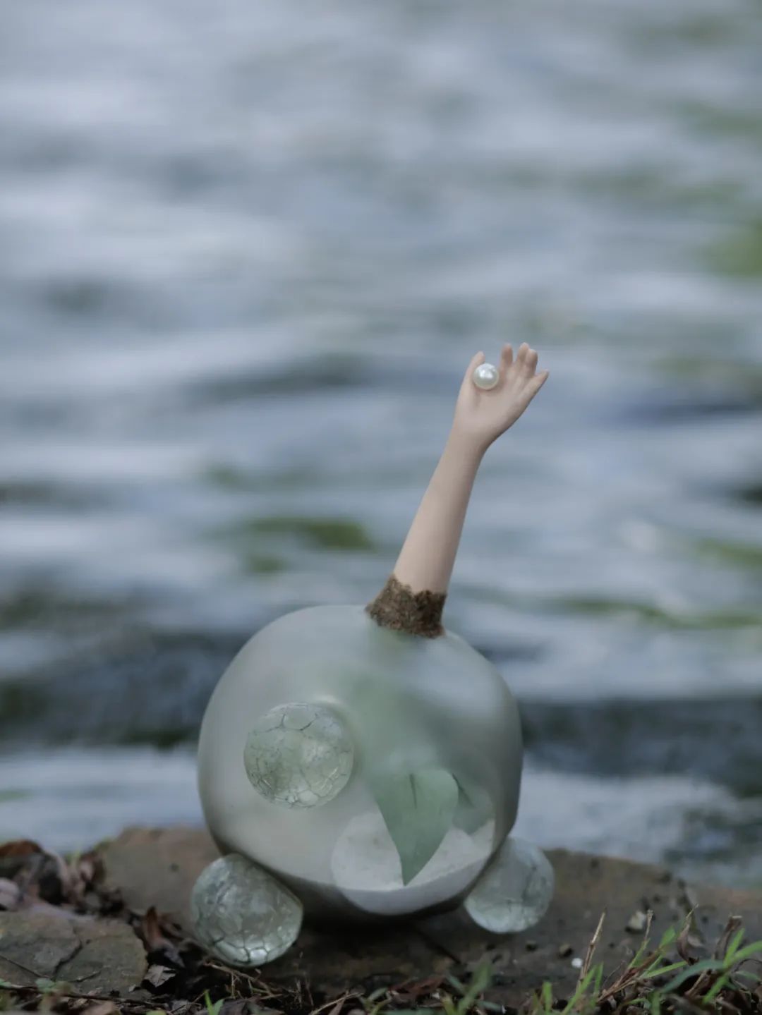 這個作品的小手裏握着一顆特別有光澤的假珍珠。