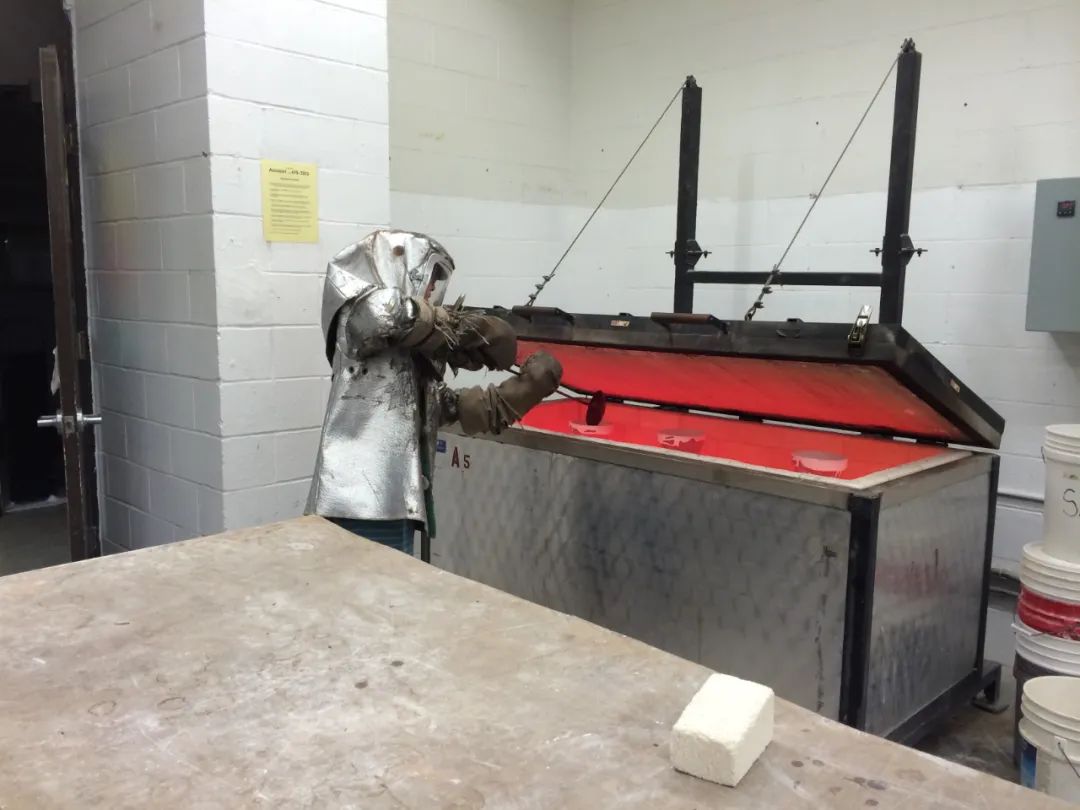 我記得那天剛邁進去,就感受到一股撲面而來的熱浪。眼前是汗流浹背的同學,還有橙紅色的火焰和玻璃交織在一起。我整個人都懵掉了:開學第一天就是這個陣仗,我以後要怎麼學下去?