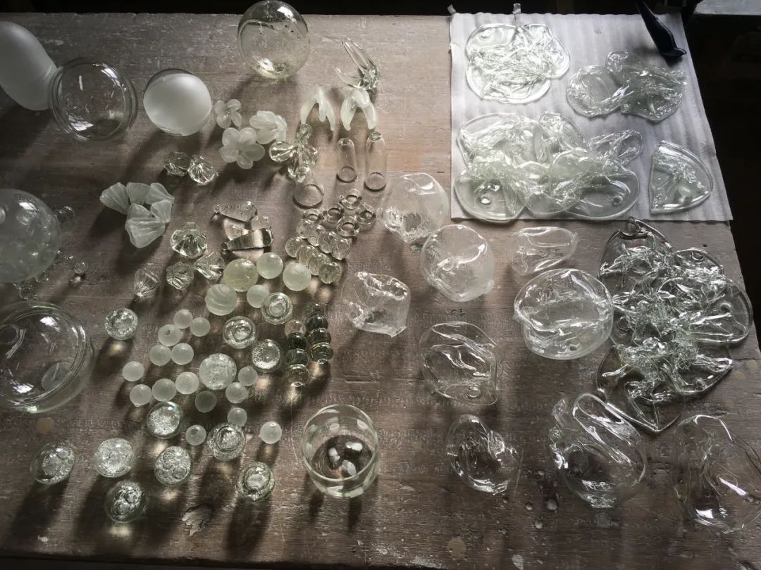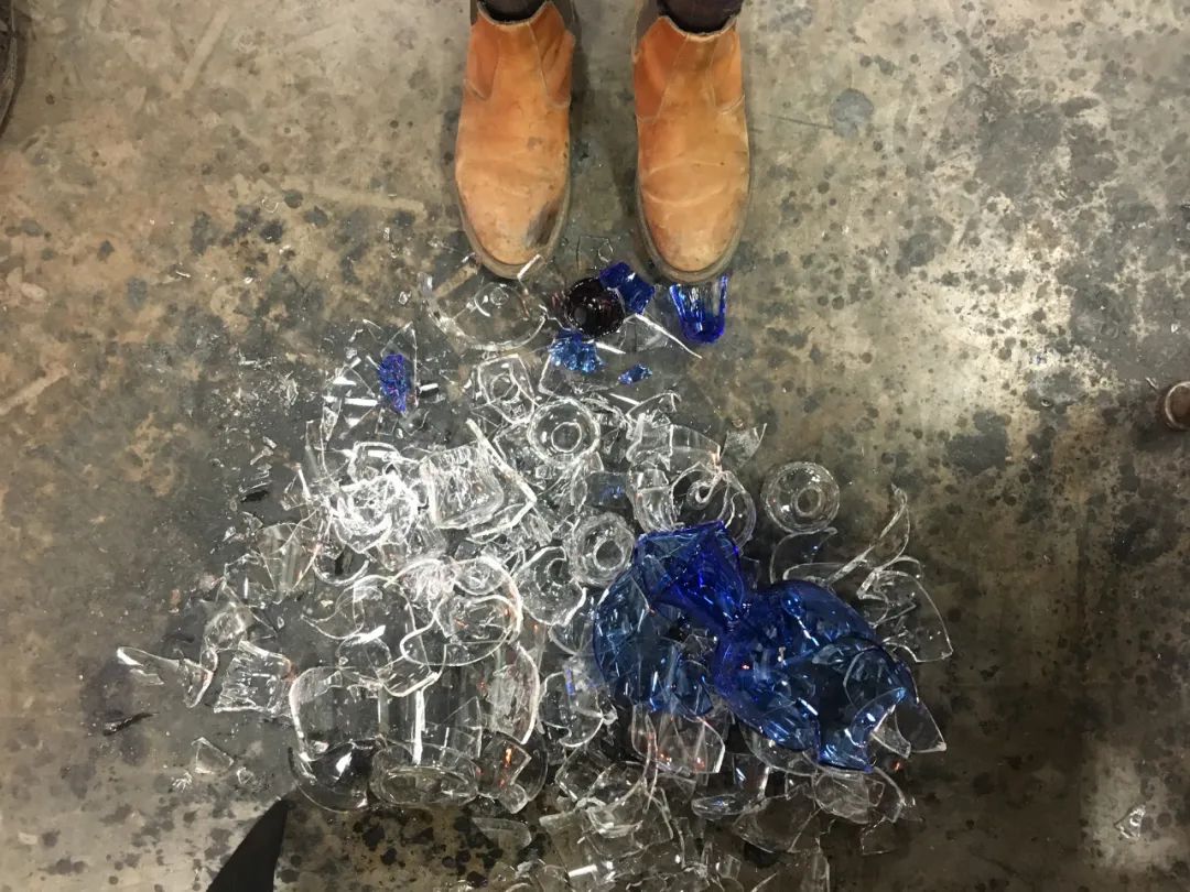 這些照片都跟火有關,看起來像魔法加成,特別酷炫。但其實我更多時候面對的日常,是這種忙活了大半天碎成一地渣的慘烈景象。我覺得玻璃有它自己的脾氣,有時候會特別不想和我合作。總的來説,它是一種對新手不太友好的材料。