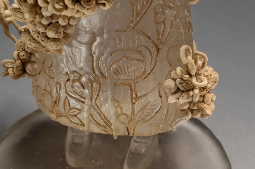 之後我們就可以往硅膠模具裏注蠟,等於是把剛才的泥稿變成了一個蠟的稿。這一步其實非常關鍵,我們要把它修得非常仔細,它是什麼樣子,最後得到的玻璃就是什麼樣子。所以我也會做一些輔助的結構,像上面的牙籤還有底下的條條,都是為了幫助玻璃在高温的時候更好地流動,以及排出內部多餘的氣體。