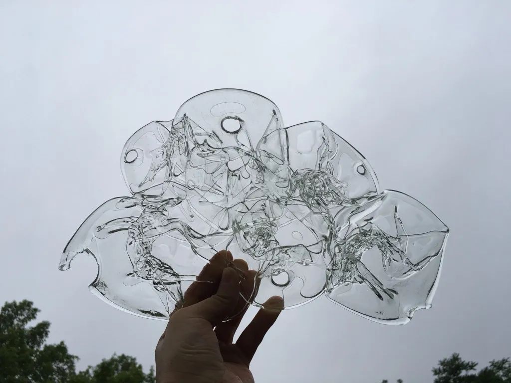 在日本的時候,我很集中精力地去思考怎麼把吹制的元素融到作品中。所以我做了大量的實驗。有的時候我會把玻璃故意做得很薄,甚至把它吹破了再融合在一起,