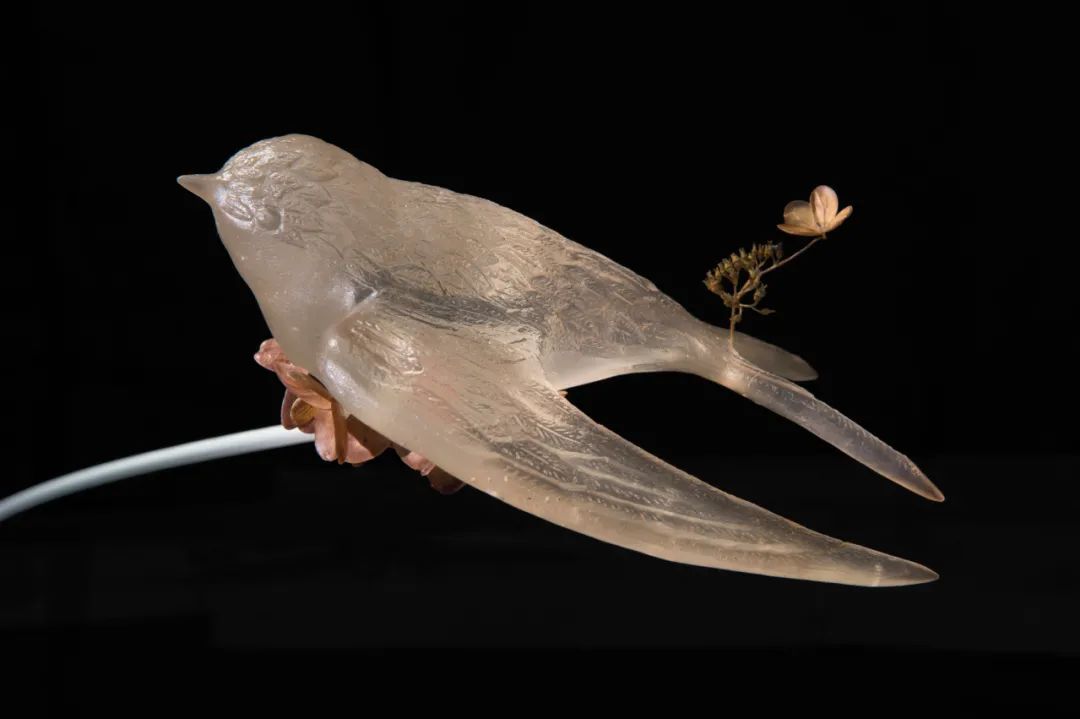 鑄造玻璃有一種半透明的質感,我覺得它很適合去表達一種介於虛與實之間的狀態,它很適合記錄逝去的事物和情感,包括記憶中很模糊的一些情景。當光線穿過作品的時候,可以看到它內部發出的微微的光亮,就像看到了它們的小靈魂被點亮了一樣。