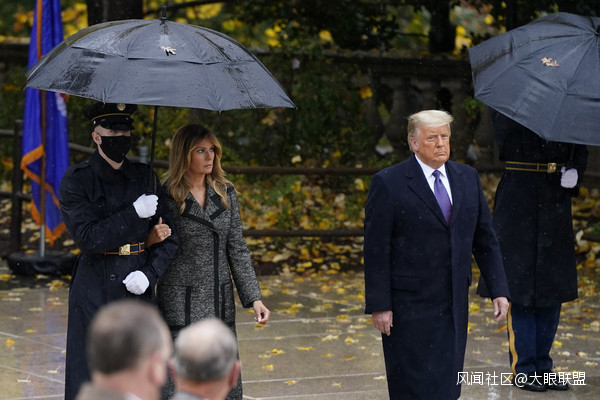 11日的退伍軍人節是特朗普和梅蘭妮亞在美選後首次露面。照片中,第一夫人被拍到緊握着一名撐着傘的軍人手臂,而特朗普則站在不遠處。肢體語言專家詹姆斯(Judi James)表示,特朗普的敗選,加上之前盛傳梅蘭妮亞可能會離開白宮,並與丈夫離婚,因此總統夫婦這一次的亮相被視為一種預言和象徵。