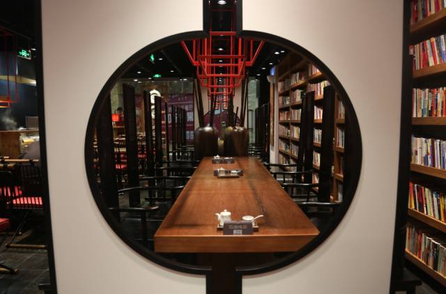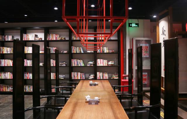 把書房拎出來打造了一個雅緻的用餐場景,正如和府撈麪宣揚的“快節奏、慢飲食、慢生活、慢讀書”。