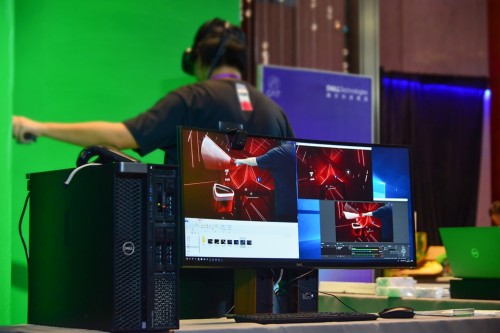 展區內還設有MR混合現實應用體驗區,戴爾Precision 5820工作站能夠充分進行VR運算並同時實現MIXED Reality,將電腦渲染的虛擬畫面與攝像機拍攝的實景畫面融合,進而達到虛實結合的效果,MR混合現實廣泛應用於廣告、科普教育領域。戴爾展區也為觀眾提供了多款繪畫、音樂遊戲等娛樂應用,在身臨其境的交互體驗中,感受戴爾對新文創的助力作用。