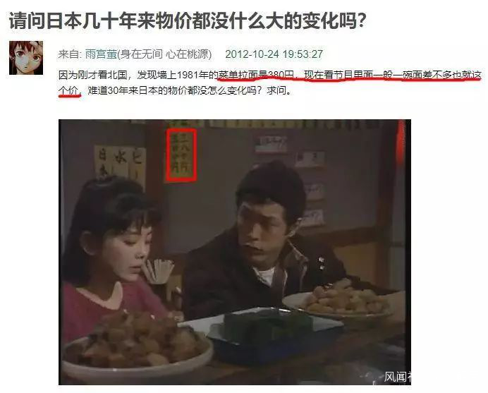 還有眼尖的網友發現,在1987年播出的日本電影《北國之戀》中,菜單上的拉麪價格只要380日元,而在33年後的日本,仍然可以380日元吃一碗簡單的拉麪。