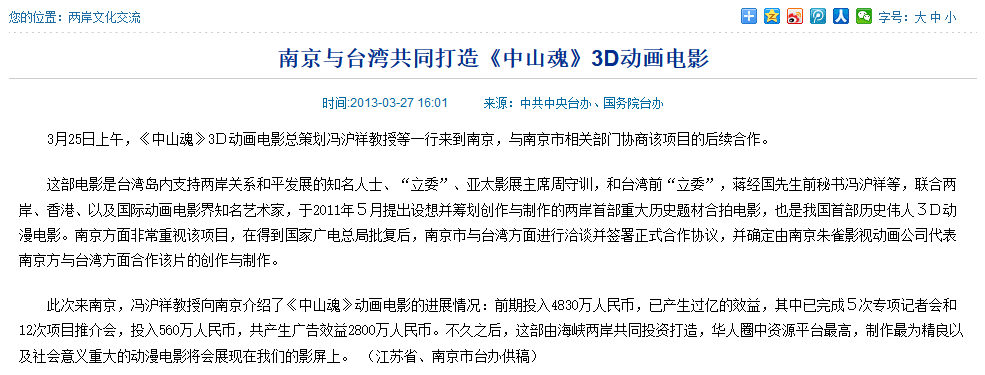 早在《中山魂》2011年5月第一次出現時,當時的名頭是“有史以來第一部兩岸‘重大歷史題材’動畫片”。