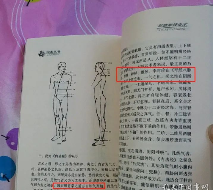 在書中開篇,他就提到了想學形意拳必須要先從練氣開始,至於什麼是氣,在解釋過程中他便又扯到了李時珍的《奇經八脈》,説白了,還是氣功那套理論。