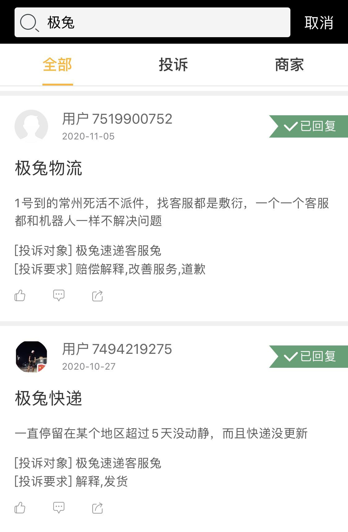 極兔方面由於自身網點不足,原本準備“蹭網”,由於韻達內網發佈《關於全網禁止代理極兔業務的通知》,其他通達系也有類似通知,導致極兔“蹭網”失敗。極兔方面稱為了保證服務,單量在控制在2000萬內,這一單量和其他快遞平台還差距甚遠。而且從第三方投訴平台看,關於極兔速遞的投訴,普遍反映極兔的速度太慢。