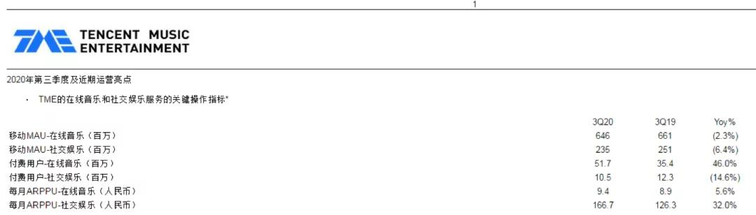 11月11日,騰訊音樂發佈了截至2020年9月30日的第三季度未經審計的財務報告。