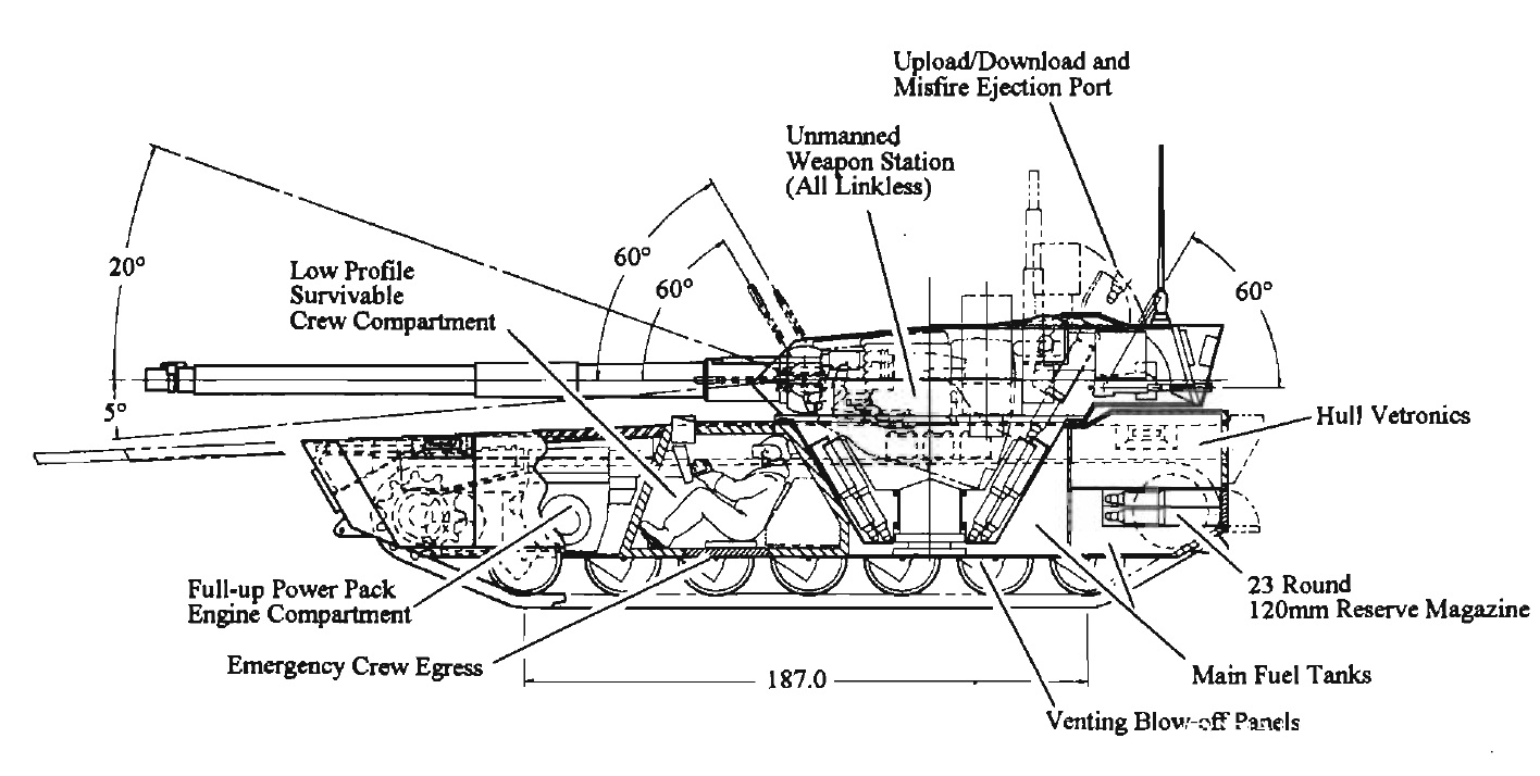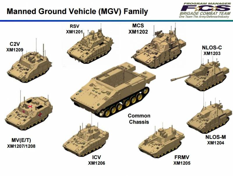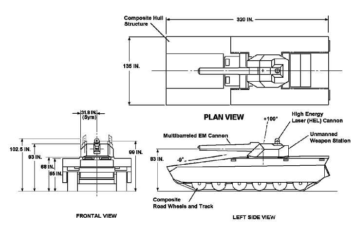 這個過於不切實際的方案最後發展成了模塊化有人地面車輛車族(縮寫MGV),這當中計劃取代坦克的是直射裝甲火炮系統。這套MGV車族的特點是戰鬥全中都在20噸上下,能夠進行空運,