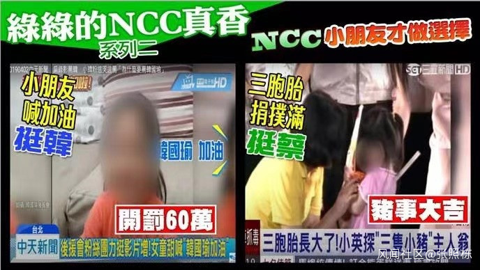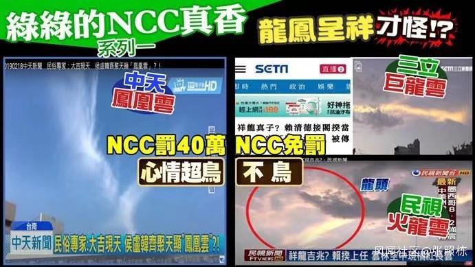 此外,NCC在裁罰媒體時是雙標的,比如報道相同天象的新聞,中天的報道就被罰40萬,而三立和民視則免罰;台灣大選期間,中天發佈的小朋友支持韓國瑜的新聞被罰,而另一家媒體發的小朋友支持蔡英文的新聞,就沒事。