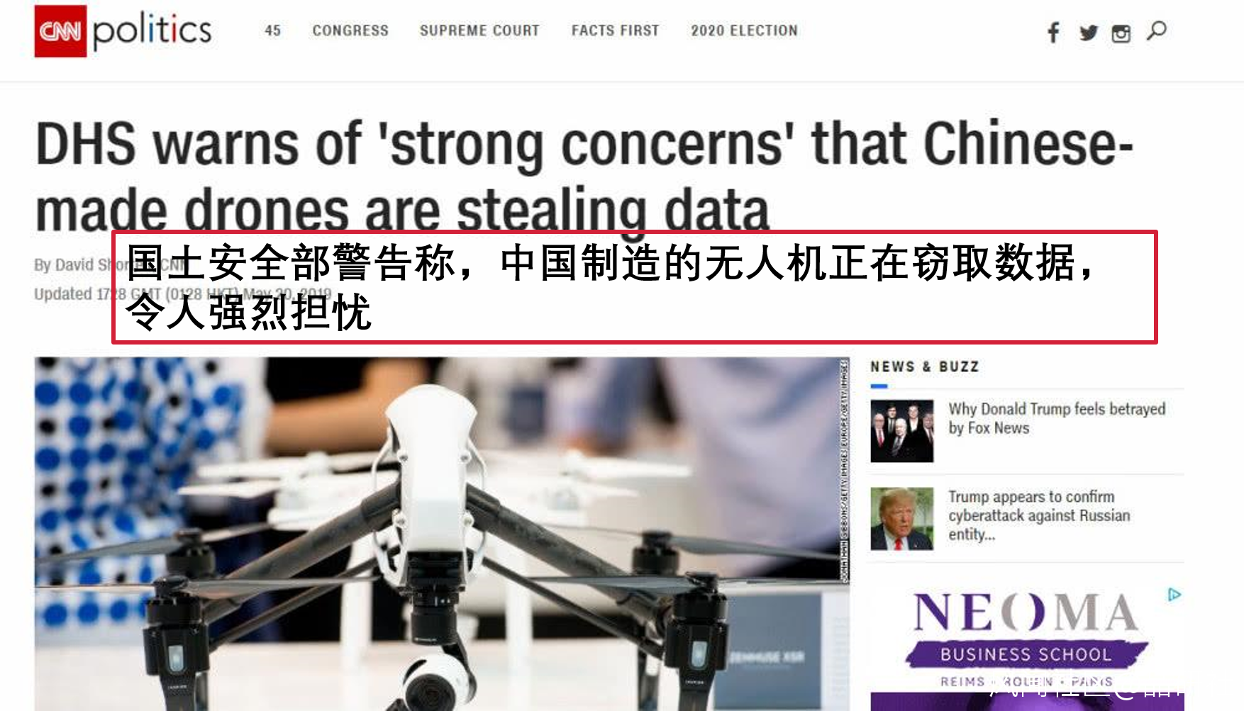 顯然不是覬覦我們的影視藝術,事情發生在2015年的美國白宮,一位工作人員在草坪上看到一架從沒見過的無人機,瞬間引發了警惕,雖後來得知是一位醉酒的美國軍官無意間操縱掉落,但是一架無人機居然能躲過層層雷達監測而神不知鬼不覺墜落在白宮地面,若是危險物可還了得!事情並沒有到此為止,2017年美國陸軍高調發布禁令,以大疆無人機產品存在“網絡安全漏洞”為由,表示停用大疆無人機及相關產品,與此同時四處扶持美國無人機公司,但是一紙禁令擋不住產品的好,即使是美國第一的無人機公司也無法完美取代,甚至被大疆打到退出了無人機製造業,可美國士兵還是需要無人機執行任務,於是自掏腰包去亞馬遜購買大疆。