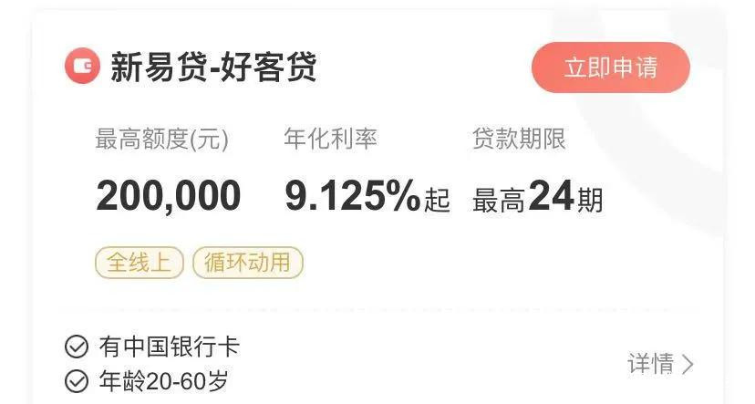 其中,新易貸-樂享貸是專為個人消費者推出的一款抵押消費貸款,業主貸、薪享貸、保單貸、好客貸是專為個人消費者推出的一款無抵押、免擔保的信用貸款產品,最高額度均為20萬。從中銀消金的進件條件來看,中銀消金對用户資質要求較高,一般需要有穩定收入和較高的償還能力。