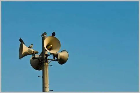 每天傍晚的歌聲就是從這個電線杆上看似平平無奇的大喇叭裏發出的,是這個廣播系統的日常測試,一些地區還會每天進行 2 到 3 次的測試。