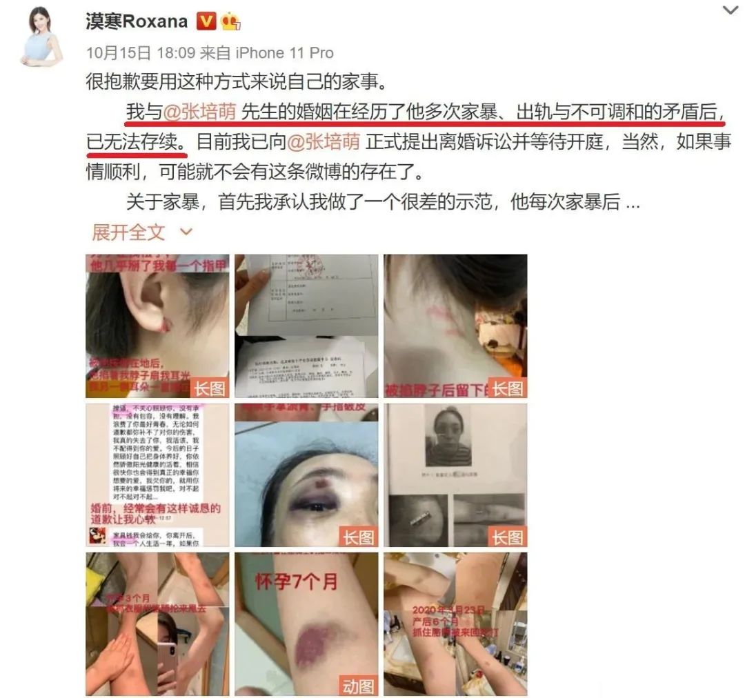 家暴,貫穿着兩人婚姻的始末。因為家暴,張莫涵三次報警。