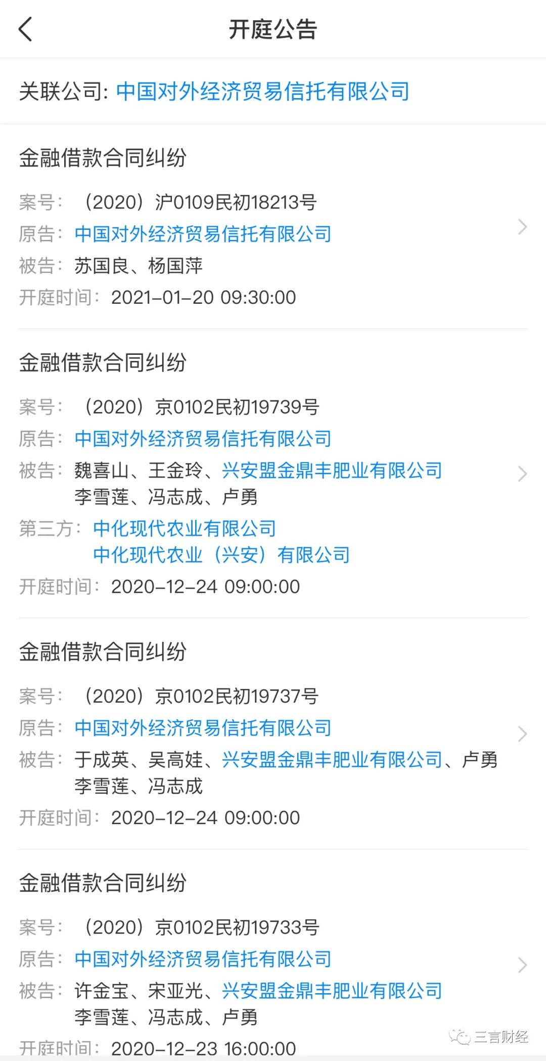 另外,三言財經發現該公司還涉及百餘條起訴他人以及被起訴的開庭信息,這些開庭信息大多數都涉及到金融借款合同糾紛。
