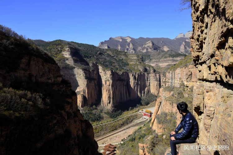 這是從桃花寨看黃崖洞,桃花寨就是黃崖洞的屏障,圖中牌坊就是黃崖洞的入口