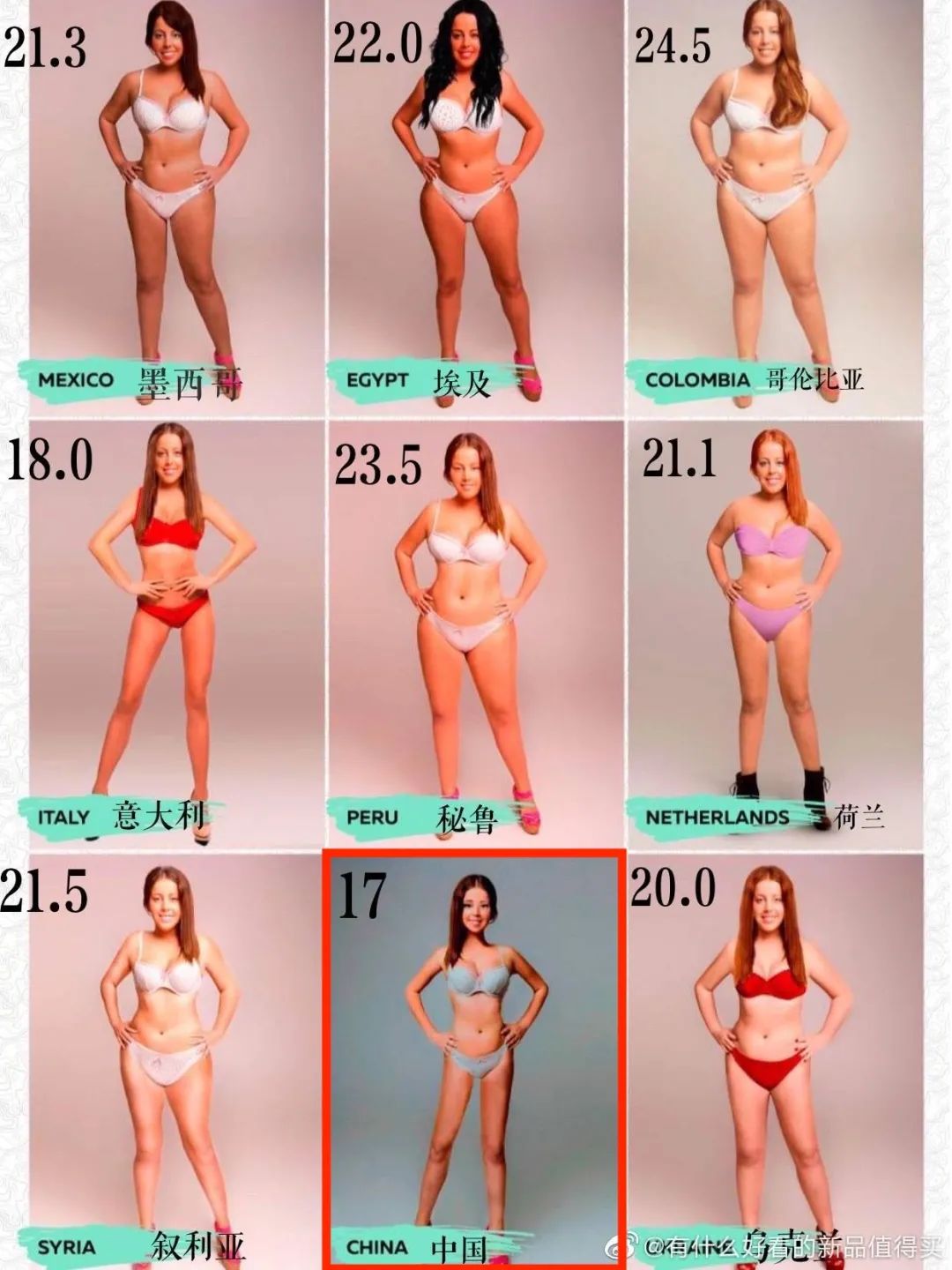 國外一家網站做過一個各國理想身材對比圖,可以看到,中國女性是最瘦的。