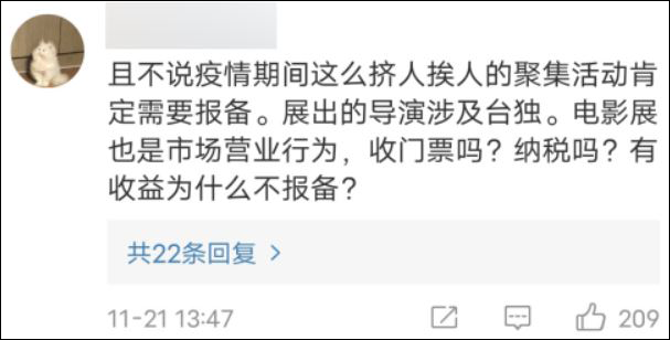 也有網友認為,停映或與影展本身違規有關。影展被叫停,可能因為它沒有報備、審批,也違反了杭州在疫情期間的相關規定。