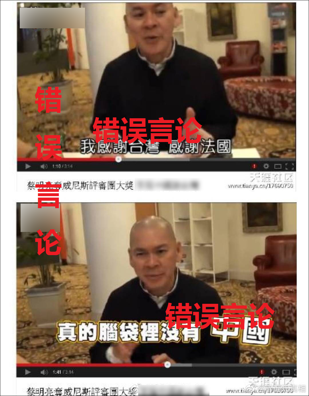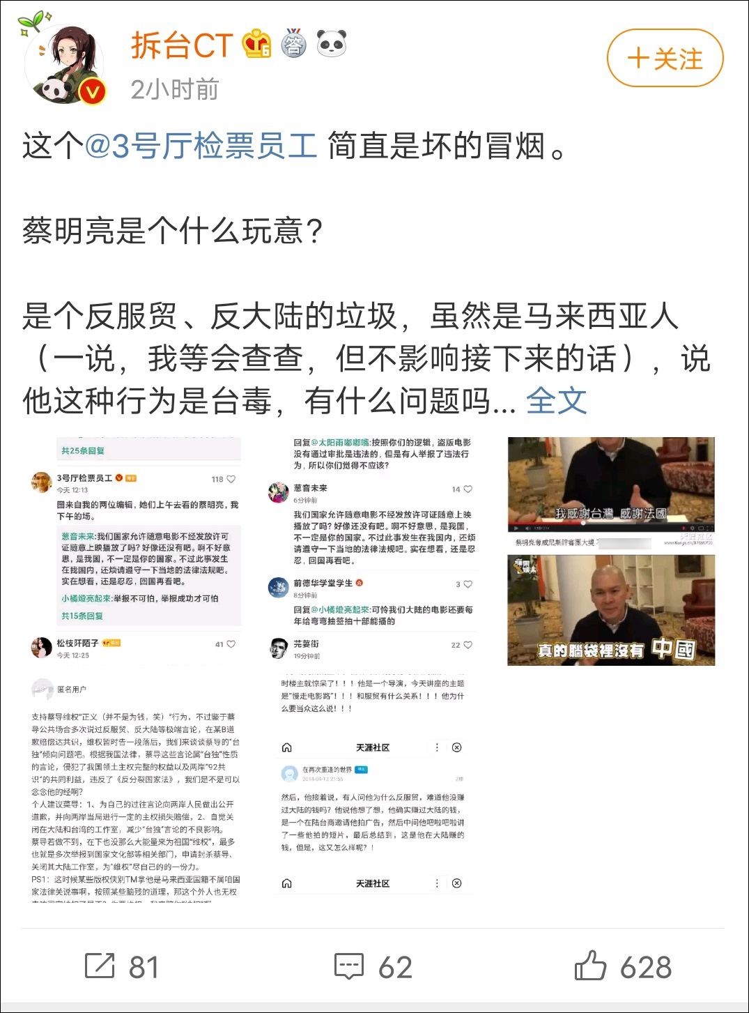 有網友認為,這或許因為導演蔡明亮涉嫌“台獨”言行。