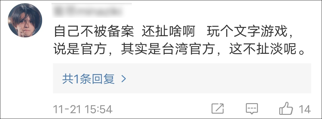 (注:中天新聞台,隸屬旺旺中時媒體集團。11月18日,台灣NCC(“國家通訊傳播委員會”)做出決議,宣佈不予換照,中天新聞台面臨“關台”的結果。台灣資深媒體人黃年等先後表示,中天基本立場是反“台獨”,這是這場衝突的一切根源。)