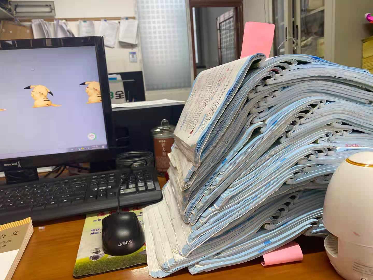 認識一位鄉鎮小學語文老師,作業全都她改,給大家看看這堆要改的練習冊_風聞