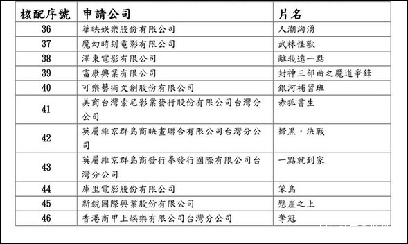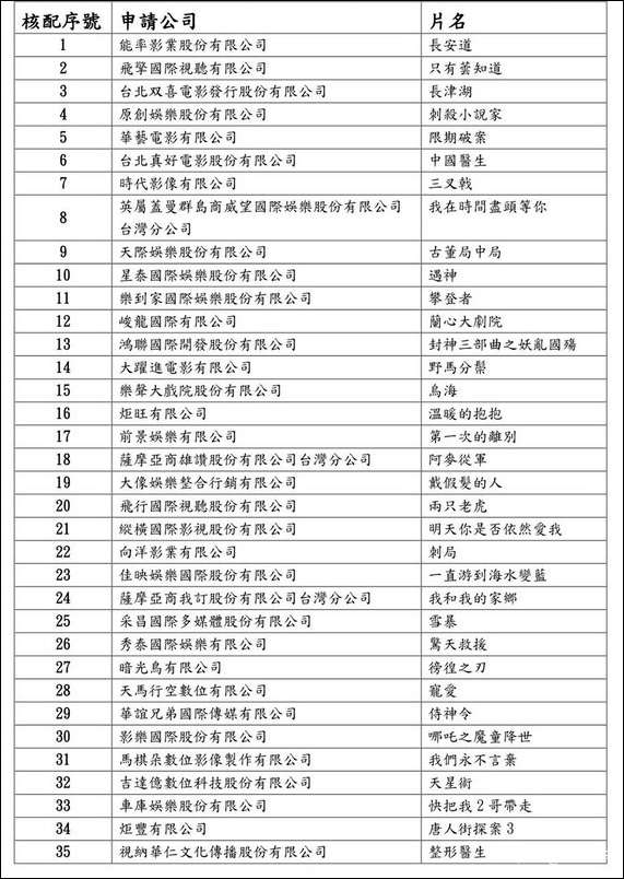 大陸申請影片順序抽籤結果 圖源:ETtoday新聞雲