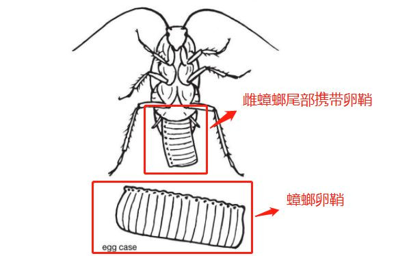 説到北方小蟑螂,大家都知道德國小蠊,這類雌性蟑螂有個特性,產卵後喜歡把卵鞘攜帶在自己的尾部,一直供給營養,直到孵化,這樣在一定程度上,也保證了營養的供給和安全性。